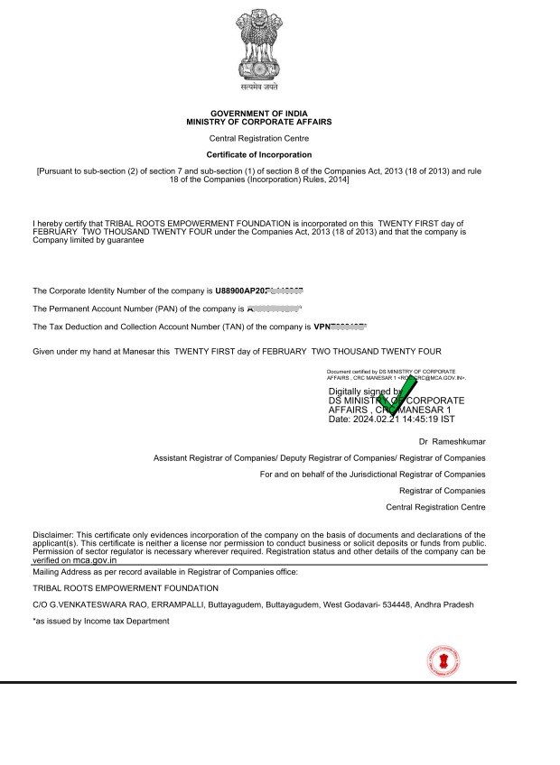 Tribal Roots Empowerment Foundation is a government-registered non-profit organization dedicated to uplifting tribal communities, with a current focus on the Andhra Pradesh region. Founded in 2019 by Mr. Srinivasa Murthy with the support of Mr. Rohit Gudimetla & other volunteers. The foundation was officially registered in 2024.